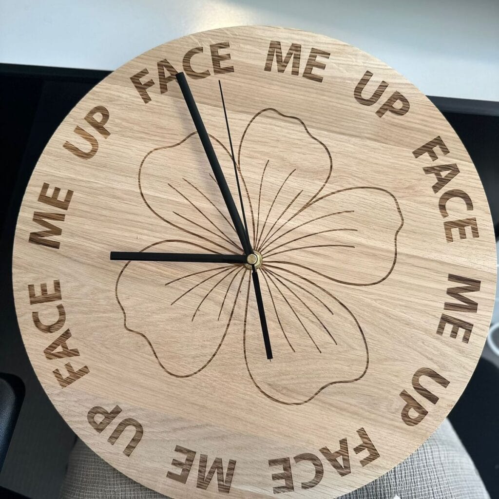 Ik had een foto gestuurd om een klok te laten maken. De resolutie van de foto was te laag waardoor in eerste instantie de klok niet kon worden gemaakt. Doordat lasergasten meedacht en AI gebruikte om alsnog een duidelijk ontwerp te maken, konden ze toch een mooie klok maken. Dankjewel daarvoor!!!