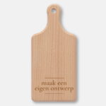 Klein houten serveerplankje. Leuk om een te gebruiken als ontbijtplankje of voor de presentatie van een klein gerechtje of factuur. De tekst en/of afbeelding wordt in het hout gegraveerd. Het hout in combinatie met een strakke gravure zorgt voor een mooi en authentiek resultaat.